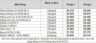 + Dầu Diesel 0,001S-V: 0 đồng/lít;