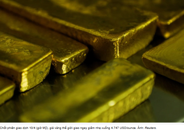 Chốt phiên giao dịch 10/4 (giờ Mỹ), giá vàng thế giới giao ngay giảm ròng 18 USD xuống 4.747 USD/ounce. Trong khi đó, hợp đồng vàng tương lai giao tháng 6 tại Mỹ chốt phiên giảm 0,6% xuống còn 4.787 USD/ounce.