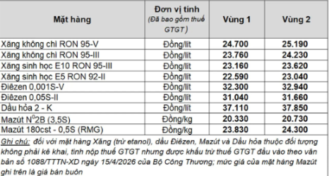 *Bảng giá xăng dầu ngày 20/4/2026 được công khai tại website Thalexim.