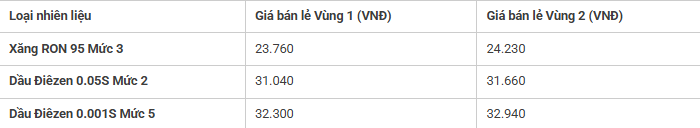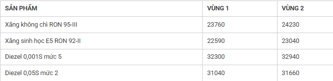 – Xăng RON95-III tăng 218 đồng/lít so với giá bán tối đa hiện hành, giá bán lẻ không cao hơn 23.761 đồng/lít.