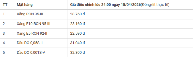 Bảng giá xăng dầu lúc 4h10 hôm nay 20/4/2026 tại Mipecorp