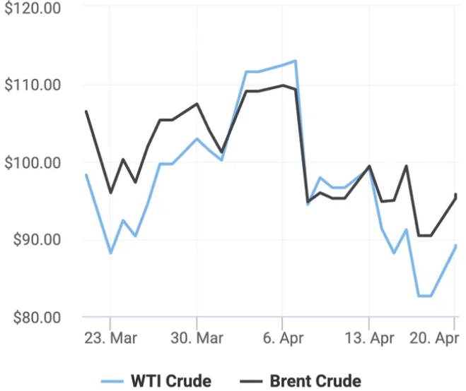 Giá xăng dầu hôm nay 20/4 trên thị trường thế giới tăng mạnh, theo số liệu từ các sàn giao dịch dầu thô như Trading Economics và Oilprice.