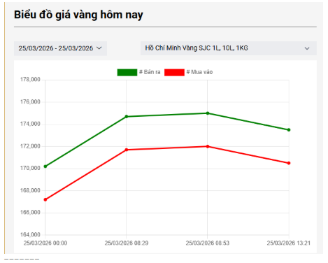 Chiều 25/3: Giá vàng SJC