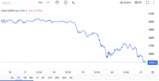 Giá vàng thế giới giao ngay chốt phiên tại thị trường Mỹ vào rạng sáng ngày hôm nay 21/3 (giờ Việt Nam) ở quanh mức 4.494 USD/ounce, giảm mạnh 177 USD/ounce so với chốt phiên hôm trước đó.