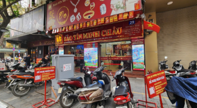 Cửa hàng Bảo Tín Minh Châu (29 Trần Nhân Tông, Hà Nội) không còn tình trạng khách mua đến xếp hàng trong sáng nay 2/4. Ảnh: Thái Nguyễn