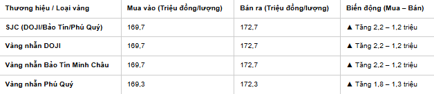 Thị trường vàng trong nước mở cửa phiên sáng nay với sắc xanh bao phủ toàn bộ các bảng điện tử. Đáng chú ý, vàng nhẫn trơn tiếp tục là mặt hàng thu hút dòng tiền khi có biên độ tăng mạnh hơn cả vàng miếng. Dưới đây là bảng giá vàng chi tiết cập nhật lúc 9h30 sáng nay tại các đơn vị kinh doanh lớn: