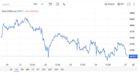 “Giá vàng đã chững lại trong tuần qua, chấm dứt đà tăng 4 tuần liên tiếp. Việc phá vỡ mốc 4600 USD/ounce sẽ làm suy yếu triển vọng kỹ thuật, trong khi việc vượt qua mức 4915 USD/ounce có thể báo hiệu sự trở lại vùng 5100 USD/ounce”, ông Chandler nhận định.