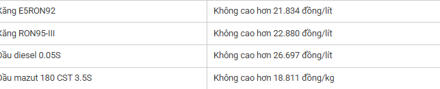 • Dầu madút 180CST 3.5S giảm 820 đồng/kg so với giá bán tối đa hiện hành, giá bán lẻ không cao hơn 18.810 đồng/kg