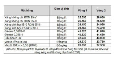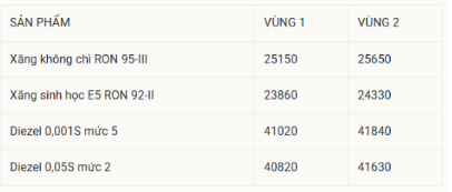 Giá xăng RON95-III không cao hơn 25.159 đồng/lít, giá Dầu diesel 0.05S không cao hơn 40.827 đồng/lít, giá dầu mazut 180CST 3.5S không cao hơn 23.331 đồng/kg.