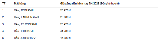 Theo Báo Phát thanh Truyền hình Hà Tĩnh có bài Giá xăng dầu hôm nay 7/4/2026: Bảng giá tại Petrolimex, PVOIL, Mipec. Nội dung như sau: