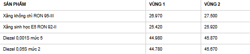 Tổng công ty Xăng dầu Quân đội (Mipecorp) điều chỉnh giá các mặt hàng xăng dầu, mức giá cụ thể như sau