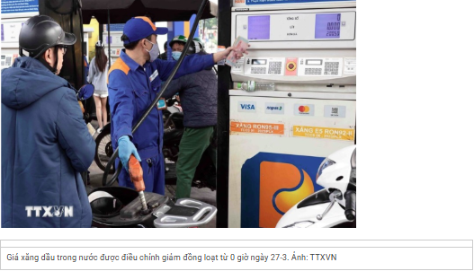 Tại thị trường Việt Nam, giá xăng dầu trong nước được liên Bộ Công Thương – Tài chính điều chỉnh, áp dụng từ 0 giờ ngày 27/3. Cụ thể, xăng E5RON92 giảm 4.749 đồng/lít; xăng RON95 giảm 5.625 đồng/lít; dầu diesel giảm 2.459 đồng/lít; dầu hỏa giảm 971 đồng/lít; dầu mazut tăng 1.503 đồng/kg.