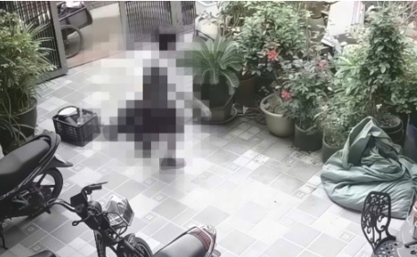 Theo dữ liệu hiển thị từ camera trong nhà, vụ việc xảy ra vào khoảng 07h55 ngày 10/4/2026. Đoạn clip dài hơn 1 phút được ghép từ hai góc quay (ngoài sân và trong phòng khách), phản ánh toàn bộ diễn biến vụ việc.