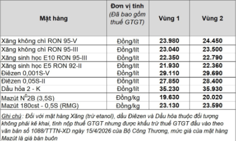 Giá bán lẻ xăng dầu trong nước ngày 23-4 cụ thể như sau: