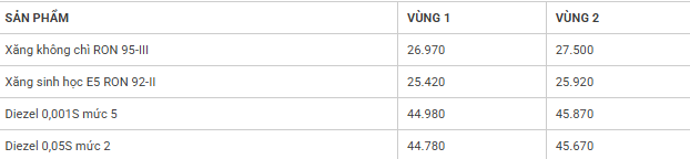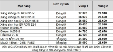 Tổng công ty Xăng dầu Quân đội (Mipecorp) điều chỉnh giá các mặt hàng xăng dầu, mức giá cụ thể như sau: